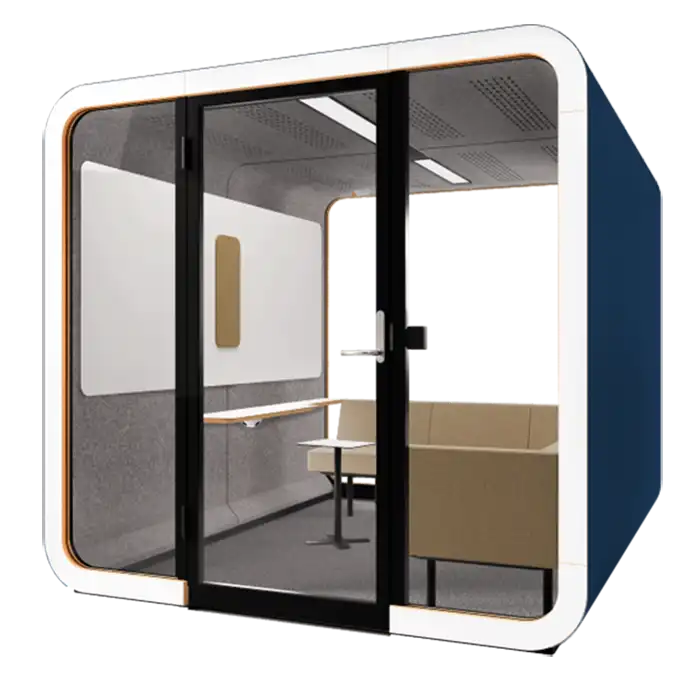 Kabincell Lucia XXL Meeting Pod, yaratıcı toplantılar ve koordinasyon toplantıları için mükemmel bir ortamdır. Rahat mobilya düzenlemesi yaratıcılığı ve rahat atmosferi artırır.
